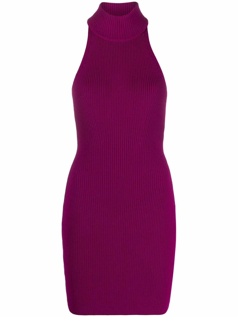 Maille nervurée, design sans manches, dos-nu, dos nageur, coupe stretch, ourlet droit. Couleur : violet.